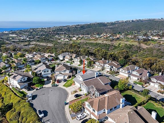 This upgraded Beacon Hill home is a gem for those seeking the Laguna Niguel coastal lifestyle. With its ocean views and prime location at the end of a cul-de-sac, this single family home offers unparalleled views and serenity, making it a perfect sanctuary. This nicely upgraded home features four spacious bedrooms (including a main floor bedroom!) and 3 bathrooms, designed with comfort and style in mind. Step into the open and inviting living area, where natural light floods through large windows, highlighting the vaulted ceilings, crown moulding, beautiful hardwood floors, plantations shutters and upgrades throughout. Culinary enthusiasts will delight in the well-appointed kitchen with upgraded cabinets, custom backsplash, recessed lights, stainless steel appliances, double oven, pantry and quartz counters perfect for crafting gourmet meals and gathering with loved ones. The nearby family room is thoughtfully designed with a cozy fireplace and seamless transition outside to the amazing yard. Upstairs primary bedroom showcases beautiful views and is nicely upgraded with plantation shutters and remodeled primary bathroom with dual sinks, walk in closet, walk in shower, separate soaking tub and gorgeous ocean views! The other secondary bedrooms are also nicely appointed and share an upgraded guest bathroom. The grassy backyard has panoramic views of the ocean and coastline to the left and majestic mountains to the right. There is ample room for a pool if desired and the oversized patio area is perfect for entertaining or dining al fresco. Additional upgrades include newer double paned windows, pex re-pipe, newer carpet, newer appliances and 2 dedicated circuits in garage for 2 electric cars. Residents of Beacon Hill enjoy an array of amenities, including 6 tennis courts, 3 swimming pools, parks and walking distance to award winning Malcom Elementary. This coastal home location is moments away from 5-star resorts, restaurants, shopping and just a 12 minute bike ride to the beach or 18 minute bike ride to Dana Point Harbor! Whether you're looking to relax in your peaceful abode, take a dip in one of the pools, enjoy a game of tennis or explore the vibrant surroundings, this home is exactly what you have been looking for in coastal luxury living!