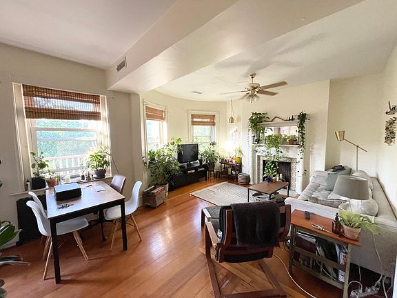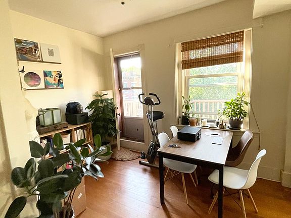Sunny and spacious 3 bedroom, 1.5 bath third floor home in Brookline Village. Certified de-leaded. Well laid out unit. Open living room to dining area, leading to a porch space overlooking a small park. Hardwood floors throughout. Decorative fireplace. Good closet space with a large deeded storage unit in the basement. Large eat-in kitchen, updated stainless appliances, gas cooking, small pantry. Back stairway off the kitchen leads to the basement of this 6 unit single standing building with 2 sets of washer and dryers. Close to Longwood Medical Center, Brookline Village and T stop. Hot water is included in the rent. There is no off-street parking associated with this unit. Video available. Photos from prior tenants. Available June 1. First month's rent,last month's rent, a security deposit of 1 month and a broker fee equal to one month due at time of lease signing. hot water is includded in the rent.