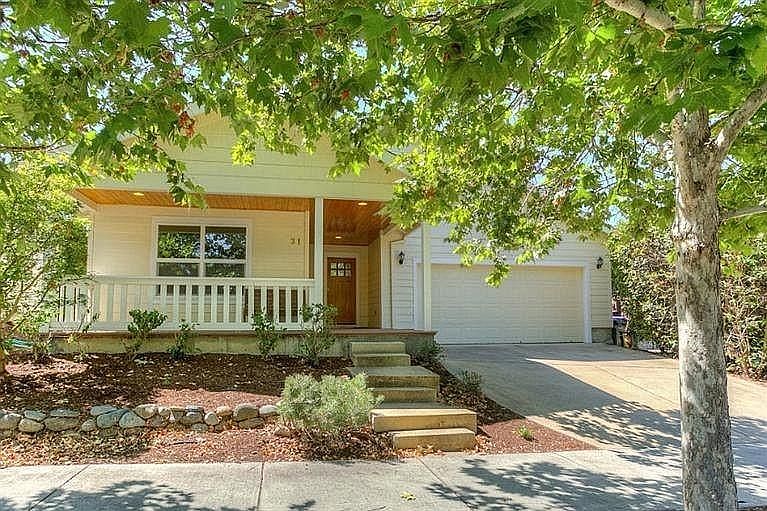 This appealing, light & bright single-level home could be just what you are looking for! A covered front porch welcomes you into a lovely open living & dining room with a wonderful vaulted ceiling and view into the backyard patio. Two of the 3 bedrooms and one bath are situated in the front part of the house, leaving the master bedroom, bath and walk-in closet privately located in the back. The kitchen is equipped with stainless appliances and granite counter tops with extended room for bar stools. The floor plan allows for easy access from the kitchen to the laundry room and attached 2-car garage. Fenced back yard with patio, landscaping and auto drip irrigation. Located in a sweet Talent neighborhood, just waiting to be yours.