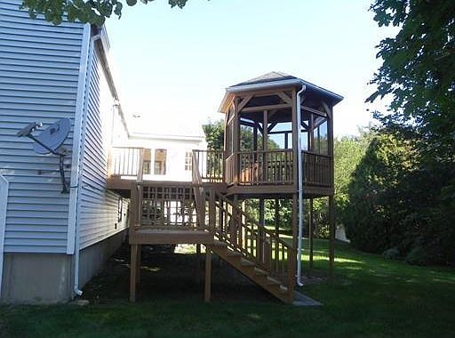 This is the location you have been looking for! Beautiful neighborhood within walking distance to St John's Prep School. Wonderful, flat lot offers .96 Acres of privacy for entertaining on your sprawling wood deck w/screened in Gazebo or in the cozy Sunroom w/New hardwood flooring & fresh paint. Large living rm w/ fireplace & bay window opens to dining room. Potential to open up rooms into the kitchen or sunroom. New hardwood floors and fresh paint in the master bedroom & 2nd bedroom & new vanities, faucets & mirrors in the master bath and main bath. Lower level features large carpeted family room w/NEW berber, fireplace & brick mantle, Laundry room, 3/4 bath and separate room for home office. Potential for an in-law suite or extended family in lower level. Maintenance free Vinyl siding & attached 2 car garage. Pre- Home Inspection has been performed. Danvers municipal electric total 2014- $3142 includes heat/lights/dryer/hot water/stove!!