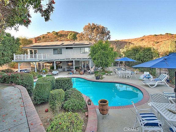 Welcome to this excellent value in Phillips Ranch! The first time on the market since new in 1985. This original owner home features a pool, spa, and city lights view along with 4 bedrooms and 2.5 bathrooms encompassing 2647 sf. There is a bonus room or possible 5th bedroom over the 3-car garage. All bedrooms are upstairs. The generously sized lot is 16,338 sf. with plenty of room to build an ADU or a downstairs primary bedroom and bathroom. The home has remarkable upgrades with kitchen and bathroom updates. a brick front porch leads to a double door entry. The living room flows to the dining room with wood floors and window shutters. A set of French doors exits to the back yard patio from the formal dining room. The kitchen is stunning with tiled back splash, granite countertops, recessed lights, a center island, stainless steel double oven, a gas cooktop, & custom cabinets with glass doors. The nook is adjacent to the kitchen with a clear view to the family room. French doors from the family room open to the back yard covered patio. A toasty brick fireplace will warm the winter nights. There is a convenient downstairs laundry room and a remodeled powder room downstairs. Traversing the wood staircase leads to 4 bedrooms. The primary bedroom is along the back of the home with stunning city lights views from the balcony. The bathroom has been updated with a walk-in tiled shower and new cabinets and tile work. Secondary bedrooms have spacious dimensions with carpet or wood floors. The optional 5th bedroom has vaulted ceilings and wood floors and shutters. Just add a closet to make it a bedroom. If privacy and entertainment are important, you have found the right home. The yard is tranquil, and resort like with a private pool/spa, terraced slope, barbecue, full length patio cover and ample side yards. What a great view of the valley below. Award winning schools are shared with N. Diamond Bar. Easy shopping choices at the Winco, Target, and Wal Mart center. Just a 5 to 10 minute drive to the Shoppes or Costco center in Chino Hills or Spectrum in Chino. Freeway access is simple to the 10, 57, 60, 71, and 210. Buyer is to assume the leased solar. Appx 5 years old with $260 per month, Sun Run.