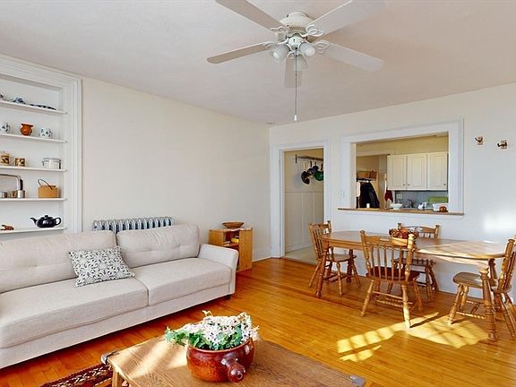 You'll fall in love with this bright & spacious condo ideally situated right near downtown Northampton! Key features include beautiful hardwood floors, lofty ceilings, and central air conditioning. Located on the second floor, this penthouse unit boasts a generous central entry hall adorned with period woodwork. The kitchen is equipped with a dishwasher, range, and refrigerator, and offers a partial open layout to the dining and living areas. The inviting living room features plenty of space for a dining table, charming bay window and elegant built-in shelving. Both bedrooms are similarly sized, each with ample closet space. The unit includes a full bathroom and an enclosed 3-season sun porch that provides a view of Lyman Road. Enjoy efficient gas heating with modern Viessmann boiler and on-demand hot water. Additional perks include a large private storage area in the basement and off-street covered parking for one vehicle, with extra parking available. Northampton living at its best!