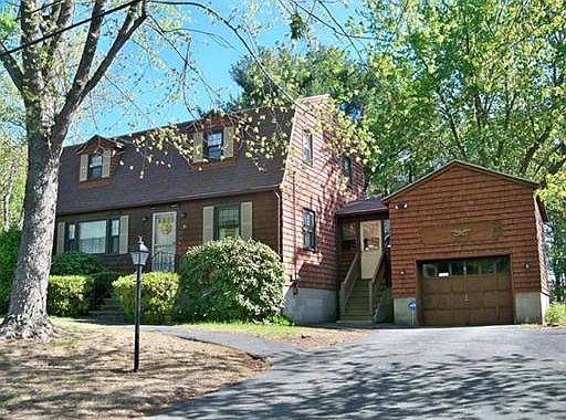Very attractive Gambrel Colonial located on a quiet, tree-lined street in a great neighborhood -- far enough removed from traffic & noise, but still conveniently close to The Loop, highways, groceries, everything! Hardwood floors abound in this home; living room, formal dining room, eat-in kitchen, den, & half bath on the first level, and 3 good-sized bedrooms and a full bath on the second. The first-floor den, with closet, can readily be used as a 4th bedroom or as a home office. From the kitchen (all appliances included) the breezeway leads to the deck & to the back yard, bordered by town woods & a peaceful view of Hill's Pond. The entire yard (front & back) is equipped with an irrigation system. The attached garage has a big loft area for storage, and the full basement offers plenty of storage space and potential expansion area. This is a fine property in a lovely location. Easy to show! Come see for yourself and make your offer! Showings begin 5.22.15