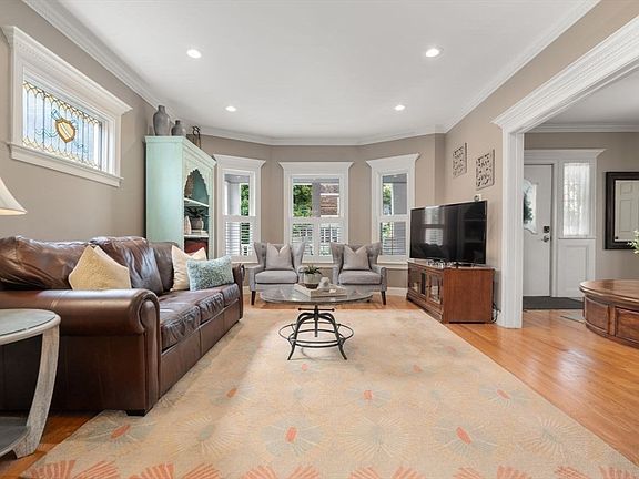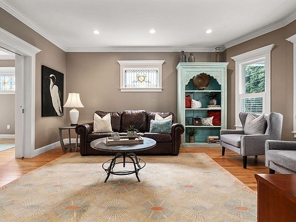 - Features: Flooring - Hardwood, Window(s) - Stained Glass, Open Floorplan, Recessed Lighting, Remodeled, Crown Molding