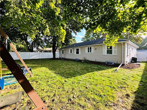Immaculate and impeccably maintained one-level living home that exudes pride of ownership throughout. Move-in ready, 3 bedroom ranch nestled in a quiet and quaint Riverside neighborhood with close access to highways- be in downtown Providence in less than 10 minutes. Updated eat-in-kitchen with ample cabinetry and pantry, dedicated dining room which opens to a large family room with corner brick fireplace. Updated full bathroom with double-sink vanity and tub/shower. Option for first floor laundry to deliver a full one-floor living experience. Gleaming hardwoods, bright bay window and replacement windows create an abundance of natural light. Full size basement with 2 finished rooms that could serve as bedrooms, office space, gym or bonus family room in addition to expansive storage and workshop space. Updated electrical, natural gas heating system (5 yrs) and hot water tank. Low maintenance exterior with young roof and vinyl siding. Newly installed tall vinyl fencing provides backyard privacy and secured playspace for children and pets. Shed for storing landscaping gear. One car attached garage with hybrid car charging station. Absolutely nothing to do but move in and make it your own!
