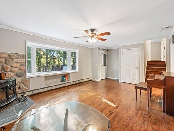 Spectacular Split! Updated country kitchen w Stainless appliances: Microwave, double oven, dishwasher, refrigerator, with undermount sink. Light wood cabinets and corian counter. Beautiful hard wood and Laminate floors. Main bath with jetted tub, stall shower, pedestal sink and tile floor. Nice sized bedrooms with lighted ceiling fans and big closets. Lower level recreation room with wood siding walls and laminate floor. Large front deck, central air. Garden shed, radon system installed, recent septic and well pump. Big yard, 2 car garage, competitive schools and taxes! A Must See!