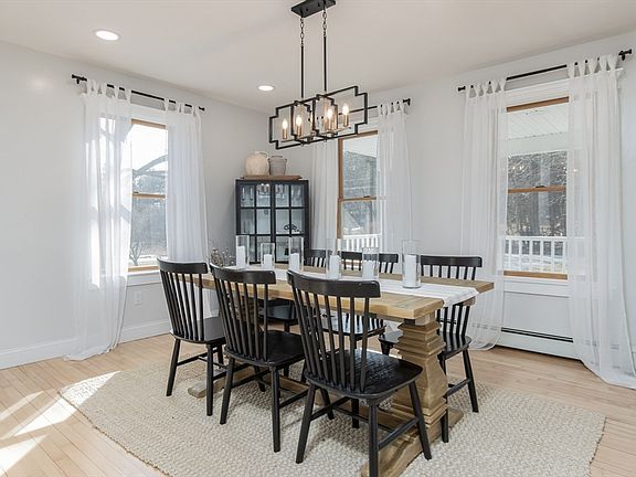 Stunningly reimagined, this refined Cape-style farmhouse blends timeless charm with modern elegance on a generous 1.5-acre lot. A welcoming farmer's porch sets the tone, leading into an open-concept interior where sightlines stretch from the formal dining area to a designer kitchen and sunlit deck beyond. Culinary enthusiasts will relish the gourmet kitchen, showcasing premium appliances, wood hood, & 8’ island w/ seating for six. A spacious mudroom, accessed from the large side deck, offers practical storage for daily life. Majority of the home was renovated to the studs in 2020, inc. all 3 baths and convenient 1st flr laundry room. This versatile layout offers up to 5 bedrooms—ideal for hosting guests or a home office. The second-floor primary suite boasts a walk-through closet and elegant en-suite. Wonderful outdoor space including oversized paver patio and retaining wall. Just moments from Route 190, this residence effortlessly balances sophistication with everyday convenience.