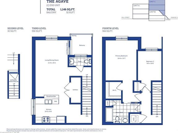 VIVA–THE BRIGHTEST ADDITION TO DOWNTOWN KITCHENER. In this exclusive community located on Mill Street near downtown Kitchener, life at Viva offers residents the perfect blend of nature, neighbourhood & nightlife. Step outside your doors at Viva and hit the Iron Horse Trail. Walk, run, bike, and stroll through connections to parks and open spaces, on and off-road cycling routes, the iON LRT systems, downtown Kitchener and several neighbourhoods. Victoria Park is also just steps away, with scenic surroundings, play and exercise equipment, a splash pad, and winter skating. Nestled in a professionally landscaped exterior, these modern stacked townhomes are finely crafted with unique layouts. The Agave end model boasts a bright open concept main floor layout – ideal for entertaining including the kitchen with a breakfast bar, quartz countertops, ceramic and luxury vinyl plank flooring throughout, stainless steel appliances, and more. Offering 1146 sqft including 2 bedrooms and 1.5 bathrooms. Thrive in the heart of Kitchener where you can easily grab your favourite latte Uptown, catch up on errands, or head to your yoga class in the park. Relish in the best of both worlds with a bright and vibrant lifestyle in downtown Kitchener, while enjoying the quiet and calm of a mature neighbourhood.