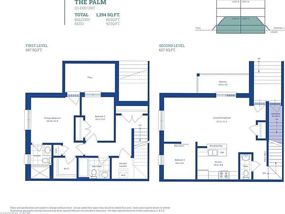 VIVA–THE BRIGHTEST ADDITION TO DOWNTOWN KITCHENER. In this exclusive community located on Mill Street near downtown Kitchener, life at Viva offers residents the perfect blend of nature, neighbourhood & nightlife. Step outside your doors at Viva and hit the Iron Horse Trail. Walk, run, bike, and stroll through connections to parks and open spaces, on and off-road cycling routes, the iON LRT systems, downtown Kitchener and several neighbourhoods. Victoria Park is also just steps away, with scenic surroundings, play and exercise equipment, a splash pad, and winter skating. Nestled in a professionally landscaped exterior, these modern stacked townhomes are finely crafted with unique layouts. The Palm end model boasts an open-concept main floor layout – ideal for entertaining including the kitchen with a breakfast bar, quartz countertops, ceramic and luxury vinyl plank flooring throughout, stainless steel appliances, and more. Offering 1294 sqft of living space including 3 bedrooms, 2.5 bathrooms, a balcony, and a patio. Thrive in the heart of Kitchener where you can easily grab your favourite latte Uptown, catch up on errands, or head to your yoga class in the park. Relish in the best of both worlds with a bright and vibrant lifestyle in downtown Kitchener, while enjoying the quiet and calm of a mature neighbourhood.