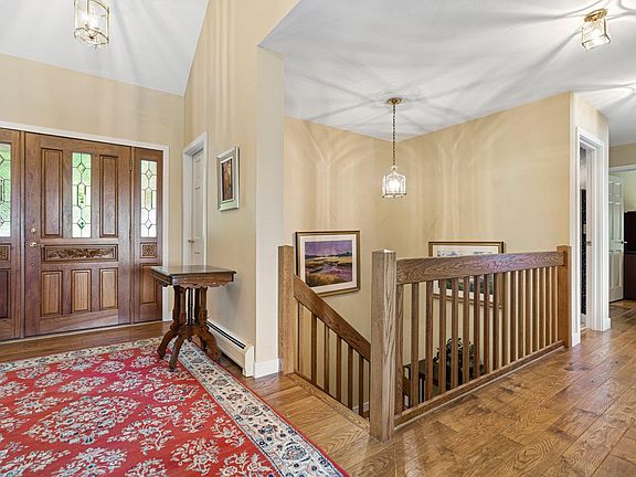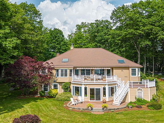 ENJOY THE PRIVACY & STUNNING VIEWS FROM THIS CUSTOM BUILT HOME. Situated on 10+ (sub-dividable?) acres this contemporary Ranch provides space to enjoy. Emerge from the long treed driveway, and get a peek of the view as you pull up to the 3 car garage. Enter the cathedral ceiling foyer & step down through French doors to the living room w/it's cathedral ceiling & large palladium window. Why not curl up with a good book by the fireplace? You're a step away from the dining room w/it's side yard & rock wall view, that fits a table large enough for 12 or more. The living space opens up - and you'll enjoy the pastoral vista through the many windows past the large multi level maintenance free deck. The tiled kitchen has Corian counters w/corner windows & sink and a large granite island. The breakfast nook & open family area makes this the heart of the home. The Primary Bedroom & remodeled bath provide space, both functional & tranquil. 2 other bedrooms are on this level as well as a mud room, common full bath & garage access. The expansive lower level is filled w/natural light & features a 3 season walk-out to the patio area. The 3/4 bath & large hobby/laundry room in addition to the finished living areas with built in cabinets, shelving, a wet bar and hidden refrigerator provides versatile uses. Private & secluded yet 15" to Concord, 20" to Manchester & approx 30" to Mht Airport. Your home is your Retreat.