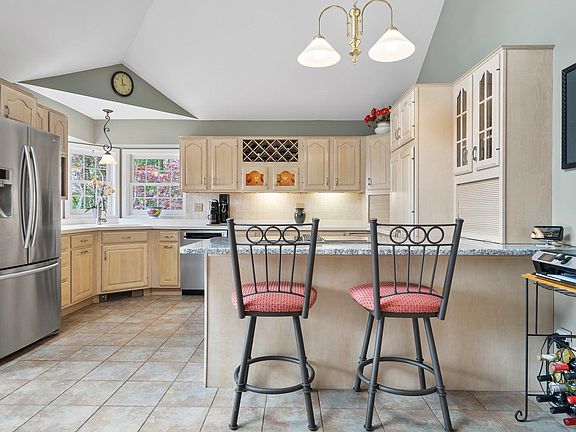 - Central Vacuum, Cathedral Ceiling(s), Ceiling Fan(s), Hearth, Primary BR w/ BA, Natural Light, Natural Woodwork, Walk-In Closet(s), Wet Bar, Wood Stove Hook-up
