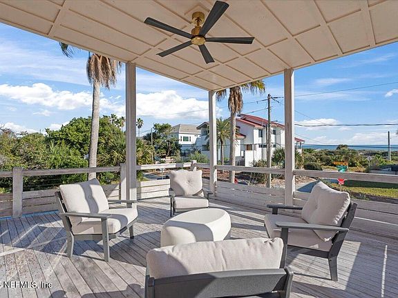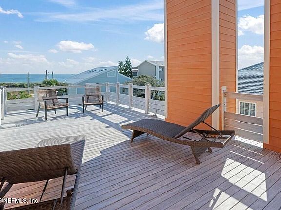 UNIQUE custom-built beachside home with breathtaking panoramic views of both the Atlantic Ocean and Intracoastal Waterway. Steps to the beach and only home on the street offering stunning water views from both sides, from nearly every window. Wake up daily to incredible sunrises & nonstop coastal activity including fishing boats, parasailing & surfing. Located steps away from Butler Beach where you can drive or horseback ride on the sand. Expansive outdoor living with two large decks made of Brazilian Walnut (Ipe) decking built in 2015 w/ an estimated 40-70-year lifespan and extreme weather resistance. Top deck at 52' above sea level and first floor 22' above sea level with ocean views from all levels. Features include, outdoor shower, 1st floor fully separate suite with sitting room, full kitchen, bathroom and garage—ideal for guests, in-law suite, or a AirBnB investment. A truly rare coastal opportunity.