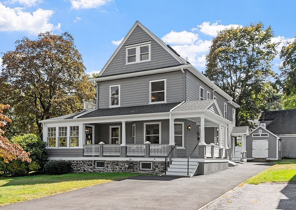 Welcome to this timeless Colonial Revival in Wakefield's coveted West Side - on a corner lot! This sun filled, spacious 5-bedroom, 2.5-bath home offers 2,425 sq. ft. of versatile living space, plus a finished attic perfect for a home office or guest suite. The first floor flows easily with hardwood floors, abundant natural light, and a fireplace. A bright kitchen opens to both casual and formal dining area ideal for everyday living and entertaining. Upstairs, five bedrooms and two full baths provide plenty of room for all. Outside, enjoy a fully fenced yard with an expansive deck off the kitchen, two storage sheds, and off-street parking for 4+ cars. A home with great curb appeal, versatile space and a location just minutes from the commuter rail, Lake Quannapowitt, Bear Hill golf course and easy access to route 95. This West Side gem is move-in ready.