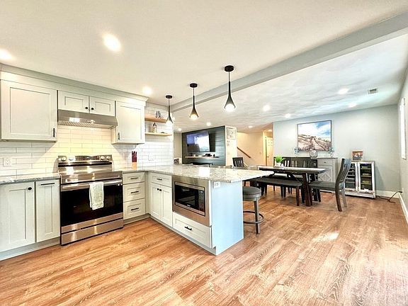 - Features: Closet/Cabinets - Custom Built, Window(s) - Picture, Dining Area, Pantry, Countertops - Stone/Granite/Solid, Breakfast Bar / Nook, Cabinets - Upgraded, Open Floorplan, Recessed Lighting, Remodeled, Stainless Steel Appliances, Peninsula, Lighting - Pendant