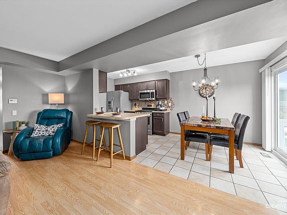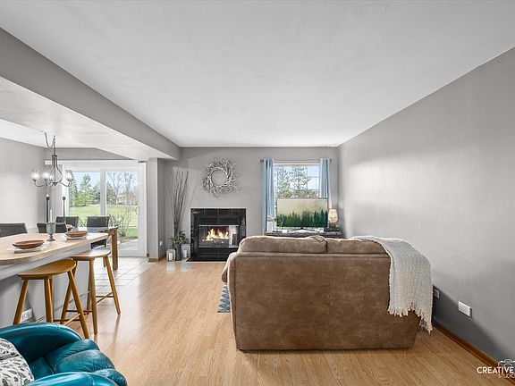 Welcome to this charming and thoughtfully updated 3-Bedroom, 1.5-Bathroom townhome, nestled in a serene environment surrounded by a beautiful forest preserve. This sought after Tiffany Place Town Home backs to wonderful walking paths. Inviting first floor Living Area with a cozy fireplace, eat in Kitchen with a breakfast bar featuring new patio sliding glass doors to your private patio and amazing views of a huge open area. 3 large Bedrooms with storage systems in the closets. Large Bathroom and convenient 2nd floor Laundry. Private entrance, attached Garage, additional driveway parking. Major components: Newer Roof and Siding. HVAC 9 yrs, Patio doors and MBR windows 2024, other 2nd floor windows updated, HWH 2 yrs. Located just minutes from shopping, dining, and the train station, with easy access to I-90, this home combines convenience with tranquility. Move-in ready and waiting for you to make it your own-don't miss this opportunity to call it home! Investors welcome.