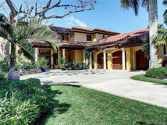 Experiencе еlеvated cοaѕtal living in Sewall'ѕ Pοint. Perched high among graceful oaks & swaying palms, this Mediterranean inspired 6BR, 5.5BA estate captures the essence of luxury waterfront living. Here, every evening unfolds with a vibrant sunset reflecting across the tranquil St. Lucie River. Step inside to a world of timeless sophistication, where an expansive open floor plan, oversized windows, soaring ceilings & rich wood accents create an atmosphere of warmth & grandeur. The heart of the home is the chef's kitchen which blends functionality with style. Primary suite is a private retreat offering a sprawling balcony where gentle breezes & starlit skies become part of your nightly ritual. Outside, your personal sanctuary awaits. Enjoy al fresco dining beneath the oaks, unwind by the resort style pool & spa or stroll along your own secluded white sand beach. With 100 ft of riverfront & private 200 ft deep water dock, this home embodies the best of the coastal Florida Lifestyle.