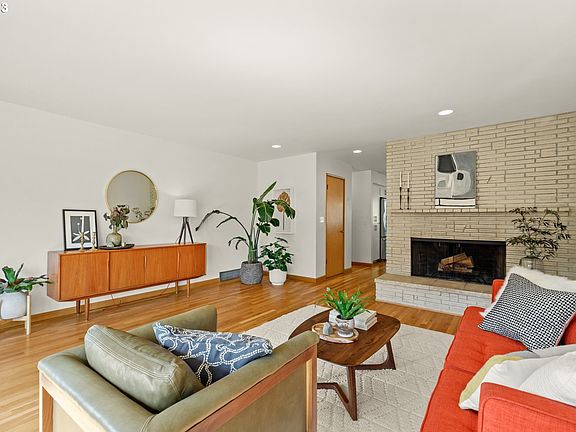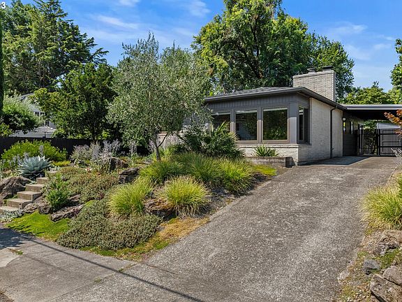 Pristine mid-century 3-bed, 3-bath home in the heart of Laurelhurst! This truly is a rare find with the perfect combination of original period details and modern amenities. Spacious living room and kitchen featuring large picture windows, tons of natural light, beautiful hardwood floors and custom blinds throughout. Fantastic buff-tone Roman brick fireplace that anchors the room together, and is shared with the kitchen. Fabulous open, custom kitchen with eat-in dining area, breakfast bar with quartz countertops, dual fuel range, with both custom cabinets and open shelving. The dining area has multiple access doors to the lovely private backyard. The primary bedroom has two generous closets, an original built-in dresser cabinet, and an updated en suite bathroom with modern fixtures and tile. The additional bathroom on the main floor is bright and open, has a tub, extensive storage, and updated fixtures and tile. The washer and dryer are conveniently located on the main floor, neatly tucked away in an original closet with original bi-fold doors and built-in cabinets. The basement is finished with a lovely third bedroom, bathroom and second living room with an elegant wood burning fireplace. The yard is truly exquisite with mature landscaping that sits on an oversized lot with an extremely private fenced backyard that is tree lined and gets tons of natural light. The front yard has a beautifully landscaped garden with native and exotic, mature plants. The driveway and carport lead to a secure access to the house making this an easy transition into the home. This property is located in the coveted Laurelhurst neighborhood where you have access to Laurelhurst Park, eateries, coffee, shops and much more! This truly is a must see!! [Home Energy Score = 6. HES Report at https://rpt.greenbuildingregistry.com/hes/OR10198847]