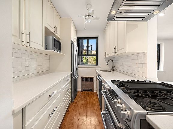 Welcome to NaBors Apartments, a friendly and charming cooperative in the heart of Fort George. Residence 3K is a well-proportioned two bedroom with a welcoming feel and sensible layout. A recently renovated galley kitchen with breakfast bar features granite counters, an outside-venting range hood, and updated stainless steel appliances. With ample cabinet space and work surfaces, this functional kitchen is perfect for serving up a feast with your haul from the nearby Inwood Greenmarket.