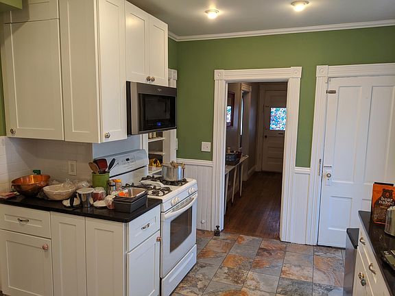 Beautifully remodeled, well cared for 2 Bedroom, 1 bath, in downtown Westerly! Updated kitchen, with natural gas range and dishwasher. Approx 1000 sq ft. street side of a 2 story duplex. The duplex is split front and back, so no one is living on top of anyone else. First floor has a remodeled kitchen with updated appliances and quartz counter tops, a spacious pantry, and an open-plan dining and living room with tons of windows and amazing light, built-in book cases and storage! Second floor holds the updated bathroom, 2 bedrooms, 5 HUGE closets and other storage. Laundry hook-ups are located in the unfinished basement, which the tenant can access for storage as well. Hardwood flooring throughout with porcelain tile in the kitchen and bathroom. Large and private yard is shared space with rear apartment (owner occupied) Heat/hot water is from a natural gas steam boiler; currently wired for Verizon FIOS; Cox cable available as well. Available starting 2/18 Water, trash removal with recycling, and lawncare are included. Credit check or references required. Renter's insurance required. Heating bill history available upon request. Pets considered with screening and additional pet deposit (partially refundable). Entire premises is non-smoking. Street parking. Driveway use reserved for property owner. Fireplace shown in photos is non-functional.