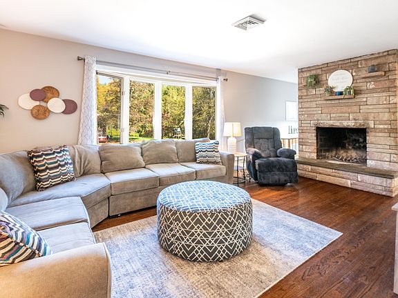 This spacious oversized 4 bedroom, 3 full bath Raised Ranch is the perfect home you have been searching for! Conveniently located in one of Brookfield's vibrant neighborhoods, on a flat 1 acre corner lot with mature plantings that offer both privacy and standout curb appeal. The home features an abundance of natural light and hardwood floors throughout the main level. The open floor plan is great for everyday living or hosting gatherings. The sunlit living room with large bay window offers a tasteful stone fireplace that adds warmth and charm. The updated kitchen boasts stainless appliances, and quartz countertops. Just off the dining area, sliding glass doors open to the expansive deck ideal for outside relaxation and entertaining. The primary bedroom includes an updated private en-suite bath, the 3 additional bedrooms are generously sized and offer plenty of closet space. Another updated full bath completes the main level. Downstairs you will find a fully finished lower level with stylish vinyl tile flooring that offers wonderful additional living space. The large Family Room with wood stove, updated full bath, pantry, storage, laundry area, and additional flexible room great for an office. Newer roof and boiler. Central air ensures comfort year round. Outside, the expansive yard offers plenty of space for outside activities. Very convenient location to the Regional Y, shopping, dining, schools, Lakes, Parks, The Greenway, and easy highway access for commuting.