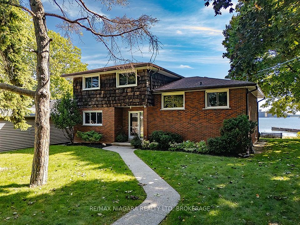 Situated directly on Gravelly Bay, this waterfront property offers lovely views of Lake Erie, the Port Colborne lighthouse, Sugarloaf marina, and the entrance to the Welland Canal. The shoreline features a sand and pebble beach with shallow, calm waters perfect for kayaking, and paddle boarding.The front entrance opens to the ground level with original hardwood floors that flow through to a floor family room featuring a gas fireplace, sliding glass doors and a walk-out to a spacious lakeside deck.The main level, above, features a formal living room with large picture windows overlooking the lake, a separate dining room, and an oak kitchen.There are three spacious bedrooms upstairs, each with generous closet space and wood floors.A two-level basement provides generous storage space, a laundry area, a root cellar and utilities including a built-in central vacuum. There is ample space to add a bedroom, a games room or hobby space.The large level lot is shaded and cooled by mature trees and lake breezes. A new pebbled concrete driveway compliments the lot with a double pad offering lots of parking.This 1,869 sq ft side split has been owned by the same family for 55 years and is now being offered for sale for the first time. It is connected to all city services and is located just minutes from Port Colborne's charming city centre and historic West Street shopping district.