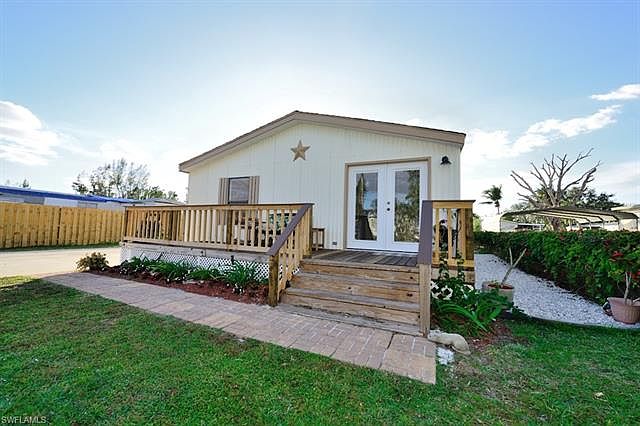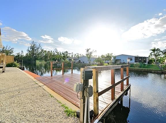 Beautiful double wide manufactured home with private dock and seawall. Lots of parking to include boat or RV parking space. Screened lanai overlooking water. Family friendly neighborhood. Convenient to beach and shopping. No HOA fees, you own the land.