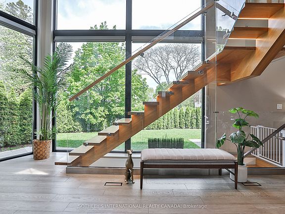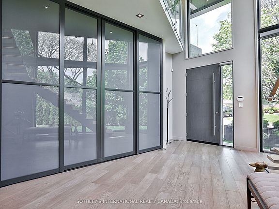 Welcome to this one of a kind Modern Masterpiece!!! A true architectural gem, this stunning custom built 4+1 bedroom home is a showcase of modern elegance, precision craftsmanship, and unparalleled attention to detail. Designed to impress, it combines striking contemporary aesthetics with the finest materials and top of the line finishes. From the moment you arrive, the beautifully landscaped grounds, sophisticated exterior lighting, and elegant interlock stonework ... Step inside and be captivated by a grand foyer featuring soaring ceilings floating stairs and floor to ceiling windows. Discover a fully integrated smart home, featuring automated blinds, a Ring doorbell, security cameras, smart appliances, and built-in Sonos speakers that fill the home. The chef-inspired kitchen is a standout, complete with premium Bosch appliances, a gas cooktop, built-in oven, microwave, under sink and whole home Kinetico water filtration systems, a built-in coffee bar perfect for both daily life and entertaining. The Stunning home offers 4 spacious bedrooms, each with its own ensuites, built in closets, floor to ceiling windows that flood the rooms with natural light. Luxurious touches are found throughout, including heated floors in the kitchen, bathrooms, and basement. Wellness is a priority with a dedicated gym, sauna, and steam room. Designed for convenience, offering two full laundry rooms and abundant storage. Even the garage goes above and beyond fully finished with heating, tiling, custom lighting, a rough-in for an EV charger, and built-in tire storage. Outdoor living is equally impressive, featuring two spacious patios, a built-in gas grill, and professional landscaping. This one of a kind property is more than just a home it's a lifestyle.