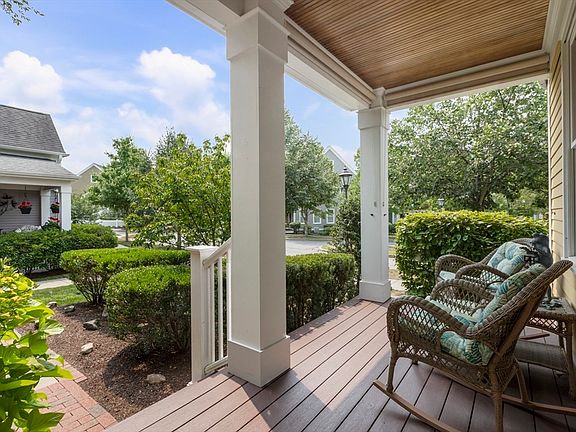 Welcome to easy living in a warm, vibrant 55+ community! Your front porch is equipped with shades so you can enjoy morning coffee & evening drinks without the sun in your eyes. Upon entering, you will be struck by the 12' ceilings and the sense of spaciousness. The updated kitchen with stainless appliances is open to the dining room and the large living room, complete with gas fireplace and a wall of windows, all adorned with custom window coverings. Access to the garage and the laundry room is off the back hallway. A den with french doors for privacy and the primary suite- with 2 closets and a large spa bath- separate shower and tub and double vanity- complete this floor. The second level offers a loft area and a nicely sized bedroom and full bath. Off the dining room, one can access the patio- big enough for your grill, eating area and a spot to relax.The fenced in yard connects to the garage/drive in the back.Red Mill Village offers tree-lined streets, a lovely clubhouse and a pool.