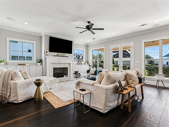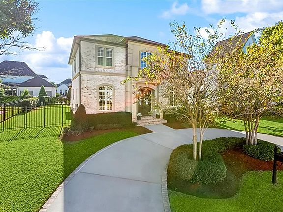 Welcome to luxury living in the highly sought-after gated community of Gabriel. This elegant 4-bed, 3-bath home greets you with a stately circle driveway and timeless curb appeal. Step inside to an open-concept layout filled with expansive windows that flood the home with natural light. The gourmet kitchen is designed to impress with marble countertops, double ovens, a gas cooktop, wine cooler, and a stylish wet bar for entertaining with surround sounds. A cozy gas fireplace anchors the spacious living area, creating a warm and inviting atmosphere. Formal dining or sitting room in the front along with a breakfast nook. Lovely primary suite features jetted tub, separate tile shower, and large vanity area. Thoughtful features continue throughout, including a mudroom, and a convenient laundry room connected directly to the primary closet. Outdoor living shines with a beautiful covered patio, complete with an outdoor kitchen, surround sound, iron fencing, and lush, manicured landscaping for added privacy and charm.