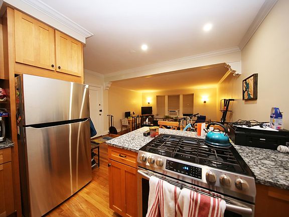 Great size and layout 1 bedroom condo located between Coolidge Corner and Longwood Medical area. Open floor plan with brilliant hardwood floors through out. Newly updated kitchen with island and brand newer stainless appliances and granite counter tops. Large living room with wall of windows, high ceilings and great natural light. Large bedroom with recessed ceiling lights, updated bathroom, in-building laundry, private storage in basement, pet friendly, common back yard. Easy access to T stops, restaurants, shops, Trader Joe's and all that Coolidge Corner, Washington Square and Brookline Village has to offer. Walk Score of 93! The monthly rent includes heat and hot water!