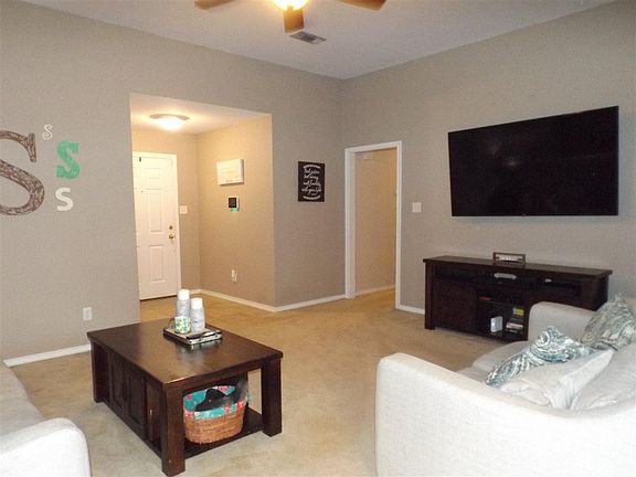 Affordable home in USDA qualified location with no cash payments to qualifying buyers. Crisp interior colors, roomy kitchen and eating area with windows into the back yard which is privacy fenced. Owners bath features separate walk in closets, separate vanities, a bath tub and shower.
