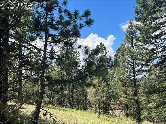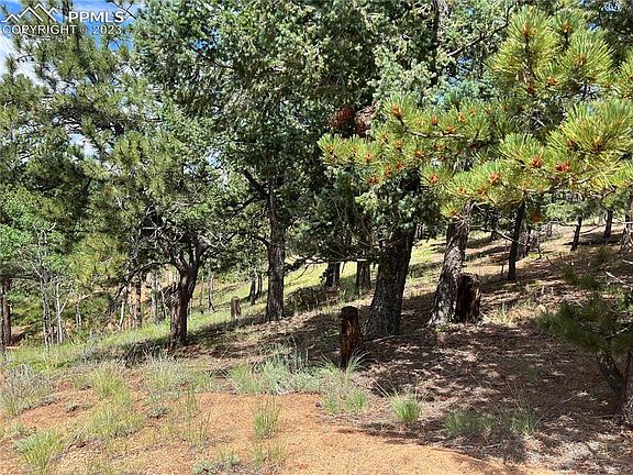 This is One of the best lots left in Pristine Spring Valley with a view! This lot takes in the 30 & acre lake view along with a Pikes Peak Mountain view! Lots like this with great views, in the mountains WITH amenities are extremely hard to find. This lot does have a level area at the top of the lot, large mature trees, plus did I mention stunning views? There is summer & winter ice fishing in Burgess Lake and 3 other ponds. There is ice skating on one of the ponds. Members also can use the club house & boat/canoe/kayak docking. You feel like you are on a year-round vacation here! Natural Gas is available at the property line. Water District/Association hook up is available. The water tap fee has not been paid. National Forest is close by for hiking & four wheeling/dirt biking. There is a grocery store, restaurants, a bar, liquor store, a post office, fire station, 2 gas stations within 10 minutes of this property. Rural yet convenient! Elk, Mule Deer, Fox, Bald Eagles, Blue Herron's, Red Tail Hawks and abundant wildlife are seen here every day.