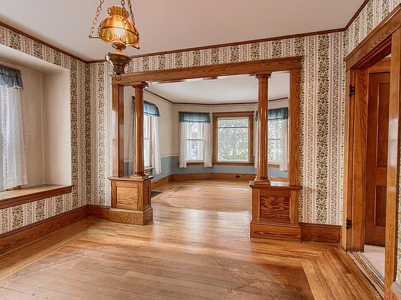 This well kept and built to last home has been in the same family for 60 years and is ready for a new owner! Beautiful hardwood floors throughout most of the home along with gorgeous wide trim around the windows. This home has rustic charm with carved wood pillars between the dinning room and living room and a claw foot tub in the bathroom. There is great potential for expansion with unused space throughout. Original doors with skeleton key locks. Close to route 2 yet located in a quiet neighborhood. This home has a large side yard that is great for pets, children or gardening. Come see this beautiful rustic home and customize it to make it your own!