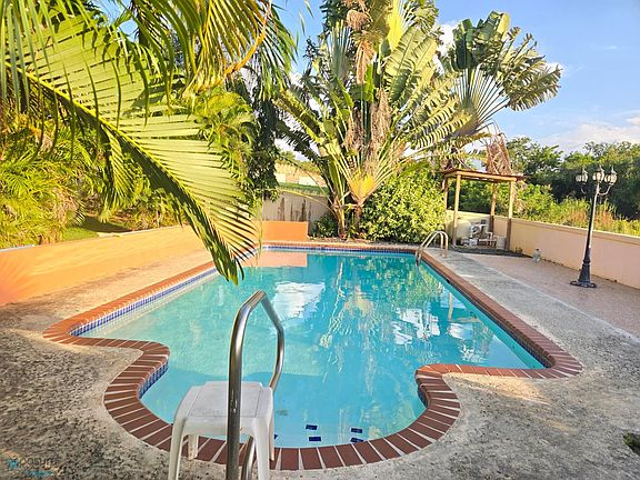 Ocean view home in Playa Inda gated community. This a rare listing in that you can actually walk to Crash boat beach along the shore line. And it has even easier access to Playa India/El Natural, a beautiful beach that is popular for scuba diving and snorkeling. Split level home is built into the hillside with the second (ground floor) and 3rd levels having the main living space consisting of 3 bedrooms and 2.5 bathrooms. The lower level features another bedroom and a full bathroom, plus a large covered open area that opens onto the backyard and pool area and can be used for entertaining or easily converted into more living space or a second apartment. Beautiful pool area, shed for pool equipment and a large generator are also located in the backyard. This is a fantastic family home and it also has potential as an AirBnB..