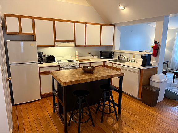 Owner's unit is available for the 1st time. Fully furnished or bring your own furniture - your choice - same price with or without furniture. A vintage 1980s decor but clean and fully functional. Electric stove, dishwasher, efficiency fridge, in-unit washer and dryer, Smart-TV, off-street parking, includes heat, high-speed WIFI Internet access, and water/sewer charges. Pets are only allowed for well-behaved, non-destructive ones. You will have to sign a pet-addendum to the lease for additional liability and damage coverage. Walk to the center of town, cafes and restaurants. Only 3 minutes drive to Okemo. On the MOOVER shuttle route. No smoking. One year lease. No subleases. Anyone who will be living in the apartment who are over 18 years of age must sign the lease. Rent amount includes the heat in the winter months, water/sewer charges, High-speed WIFI Internet access, worth about $300 per month.