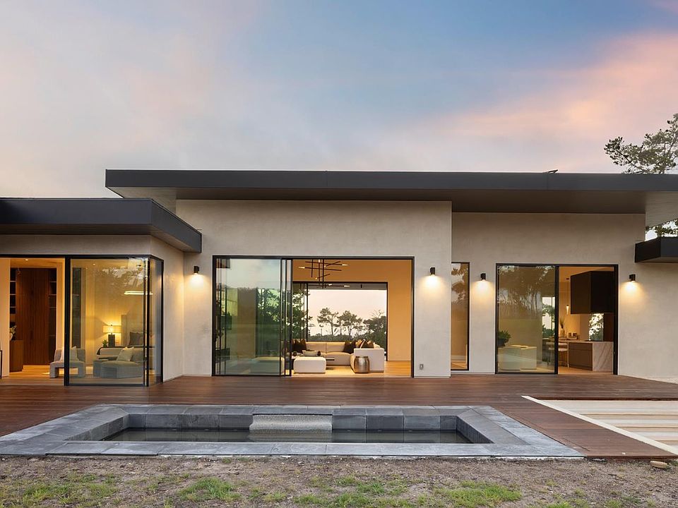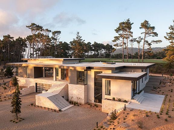 Located on prestigious Poppy Lane in the heart of Pebble Beach, 31 Poppy is a modern coastal masterpiece offering panoramic golf course views and a rare fusion of privacy, elegance, and proximity to world-renowned fairways and scenic drives. Designed with striking architectural lines, expansive glass, and a seamless indoor-outdoor flow, this residence exudes sophistication and comfort. Inside, curated finishes include natural quartzite countertops, a limestone feature wall, walnut-paneled Savaria elevator, and custom cabinetry, skylight, and veneers imported from Dubai. A chef's kitchen boasts premium Gatineau appliances, dual cooktops, and industrial hot-rolled steel hood. Luxury continues with a floating oak staircase, refrigerated wine wall, European windows, and a spa-like powder room with an invisible sink. Outdoor living is reimagined with IPE decking, a vanishing-edge spa for 12, firepit with LED mood lighting, and stone-clad patios, 12V landscape lighting, and a 6-car garage to protect your collection when you aren't showing it off in the motorcourt. With Carmel-by-the-Sea around the corner and all the incredible amenities of the Central Coast within a short, beautiful drive, this is Pebble Beach living at its finest.