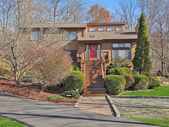 Inside, the heart of the home is a large eat-in kitchen and a formal dining room, home office and a magnificent sunken living room that features a grand fireplace and soaring ceilings. On the first floor you will also find a bedroom with a bathroom just outside the door. Overlooking the living area is a spacious loft, adding to the open and expansive feel. Outdoor living is just as inviting, with an spacious deck that leads to a private patio area where you can enjoy the peaceful, wooded grounds. The home also offers practical perks, including a one-car garage and a full walk-out basement with abundant storage. Situated in the Hendrick Hudson School District (District 3), this home is perfectly positioned for an easy commute to New York City (minutes from multiple train stations) and is nearby to all of the shopping and restaurants in the area.