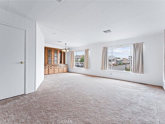 Beautiful and well-maintained, this 2-bedroom, 2-bathroom mobile home is located in the highly sought-after Saddleback Mobilodge senior community. The home features new paint inside and out, new carpeting throughout, a built-in china cabinet, and a walk-in bathtub. Also included is the mini wet bar, laundry room, formal living room, and family room, all within a very quiet end unit. Large spacious porch, patio, and carport. The gated, family-owned community is known for its attentive on-site staff, well-maintained, and beautifully landscaped grounds. Conveniently situated near historic Old Towne Tustin, the park offers amenities such as a swimming pool and spa, clubhouse, shuffleboard court, billiard room, library, laundry facilities, and boat and RV storage. Residents enjoy a vibrant social calendar with planned events and activities.