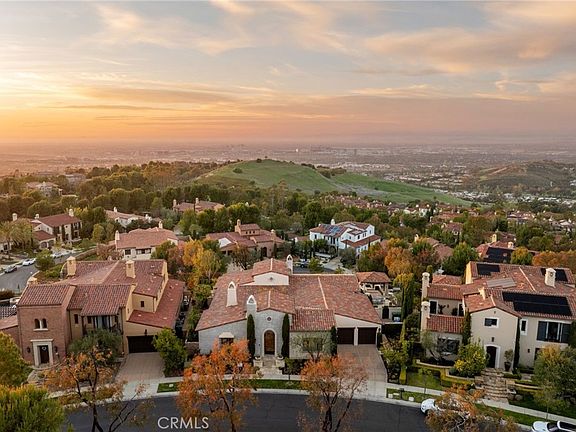 Discover the crown jewel of Turtle Ridge—an exquisite single-story La Cima residence perched on a private, elevated cul-de-sac on a single loaded street at one of the highest points in this prestigious guard-gated community. As one of only three La Cima single-story homes in this premier location, this magnificent 4,100 square foot estate commands breathtaking panoramic views of mountains and sparkling city lights as far as the eye can see. Step through the romantic breezeway and welcoming courtyard into a thoughtfully designed open floor plan featuring soaring vaulted ceilings and an abundance of natural light. The front foyer showcases a breathtaking $85,000 chandelier that exemplifies the level of luxury throughout. This architectural masterpiece offers four ensuite bedrooms, four-and-a-half bathrooms, a formal dining area, versatile bonus room, generous guest casita, and a meticulously designed three-car garage with custom honeycomb lighting for the automotive connoisseur. The professional-grade kitchen features a massive granite island, walk-in pantry, and premium Viking appliances that will satisfy the most discerning chef. Throughout the residence, you'll find custom built-ins, designer finishes, hand-selected stone accents, and elegant crown molding. Step outside to your own private resort oasis with salt water pool and spa, three inviting fireplaces, and a luxurious entertainment cabana. The outdoor kitchen is equipped with Viking grills, refrigerator, kegerator, and ample counter space, while multiple covered lounging areas, flat-screen TVs, and a swim-up bar create the ideal setting for entertaining. The primary suite provides a tranquil sanctuary with an extraordinary walk-in closet featuring custom organization systems. Additional premium amenities include a multi-camera security system, multi-zone audio, whole-house water filtration, and designer finishes throughout. Situated in the highly desirable Summit at Turtle Ridge near award-winning Vista Verde Elementary, TVT, and University High School, this exceptional property offers the perfect blend of luxury, privacy, and convenience in one of Irvine's most coveted neighborhoods. Conveniently located near the 405 and 73 freeways, you'll enjoy quick access to California's most renowned beaches, world-class shopping destinations, and exquisite restaurants. Homes of this caliber rarely become available in this unrivaled locale—an opportunity not to be missed.