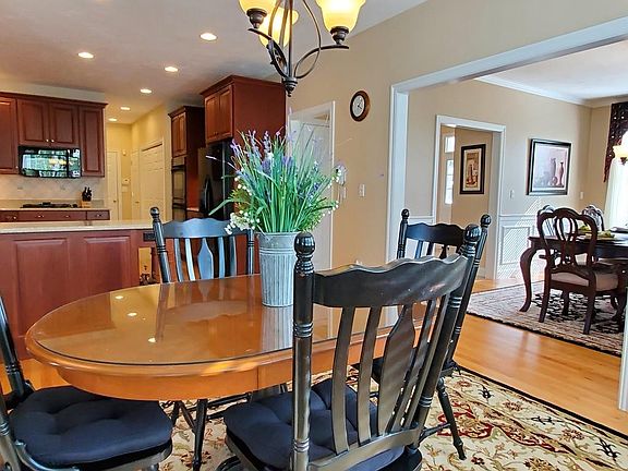 This amazing Colonial with hip roof and farmer's porch was built in 2006, set on a professionally landscaped lot with an awesome deck, nice backyard, and located in the very desirable Hillcrest Estates Subdivision. The kitchen has quality cherry cabinets, quartz counters, peninsula, tile back splash, and opens wide to the family room with soaring ceilings, gas fireplace, and large picture window bump-out with window seat. Dining room with custom china cabinet bump out. Living room/office with double french doors. Master suite of your dreams, with two walk-in closets, bonus room (exercise room or office?) sitting area, and laundry closet. Current owners put so many extras into this house when it was built! Gleaming hardwood floors, 9' ceilings, 3 zone central air, two car attached garage, basement waiting to be finished with full size windows and steel beam support for no lally columns. Minutes from the train station and major routes. This house is incredibly clean and well maintained!