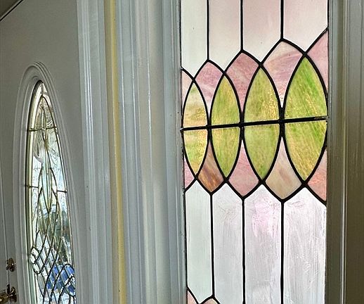 Old english style fireplacePrivate rear deckNatural wainscoat ceilingOriginal stained glassFinished basement areaAdditional kitchen prep areaWhirlpool soaking tub