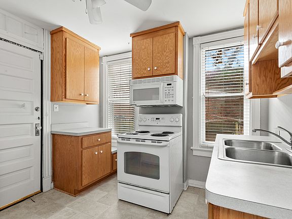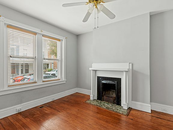 historical brick rowhouse. Original pine wood floors, crown molding, chair molding, original skylight, 3 bedrooms on 2nd floor, one half bath with pedestal sink. Beautifully decorative fireplaces w/decor. Claw foot bathtub. Spacious rear patio for entertaining. Convenient to shops, dining, and highways.