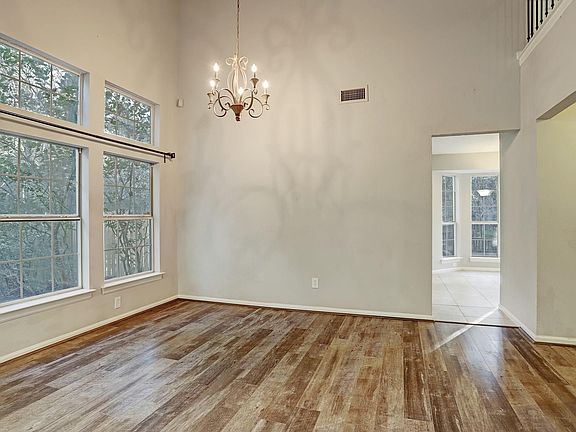 Beautiful two-story home is ideal for entertaining with open floor plan. This gorgeous home offers stunning features such as high ceilings and lovely laminate flooring throughout the living spaces. The kitchen provides exquisite amenities such as granite countertops and gas cooktop which opens to a breakfast nook and additional family room. The spacious owners retreat boasts a window seat and spa-like bath with whirlpool tub. The lovely bath additionally features granite countertops with double sinks and vanity area. A massive backyard offers a large finished deck making it great for relaxing and entertaining. Excellent parks nearby. Zoned in exemplary Conroe ISD/Woodlands School. Convenient access to I-45, Bush Int'l Airport, Grand Parkway, Hardy Tollway, Woodlands Mall, upscale shopping and dining.