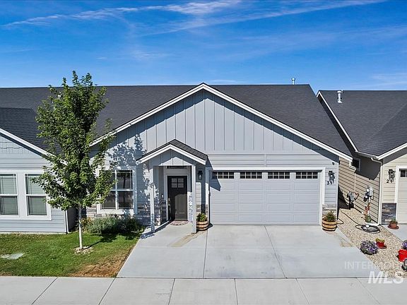Welcome to this stunning 3-bed, 2-bath home in Star’s desirable Stonecrest community. Built in 2022, this rare single-level residence stands out in a neighborhood where most townhomes are two-story. Inside, custom finishes and quality details shine throughout. The great room features soaring ceilings and a cozy fireplace, creating a warm, open atmosphere. The chef’s kitchen offers sleek quartz countertops, upgraded cabinetry, a gas range, stainless steel appliances, and ample workspace—perfect for cooking and entertaining. Large windows fill the home with natural light, highlighting the refined design. The private primary suite boasts a spa-like bath and generous closet, while two additional bedrooms provide flexibility for guests, an office, or hobbies. Ideally located near shopping, dining, and local amenities, this home combines modern style, craftsmanship, and a sought-after single-level layout in a prime location with no immediate back neighbor. Also includes an alarm system and a water softener. SELLER IS OFFERING A $10,000 CREDIT TO BUYER WITH ACCEPTABLE OFFER TO USE TOWARDS CLOSING COSTS AND/OR A RATE BUYDOWN.