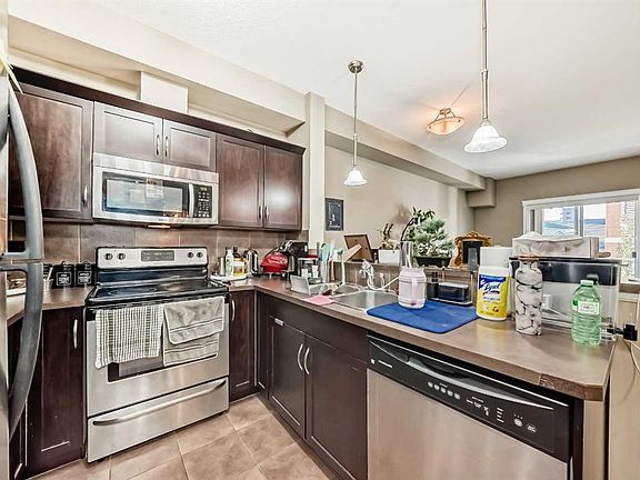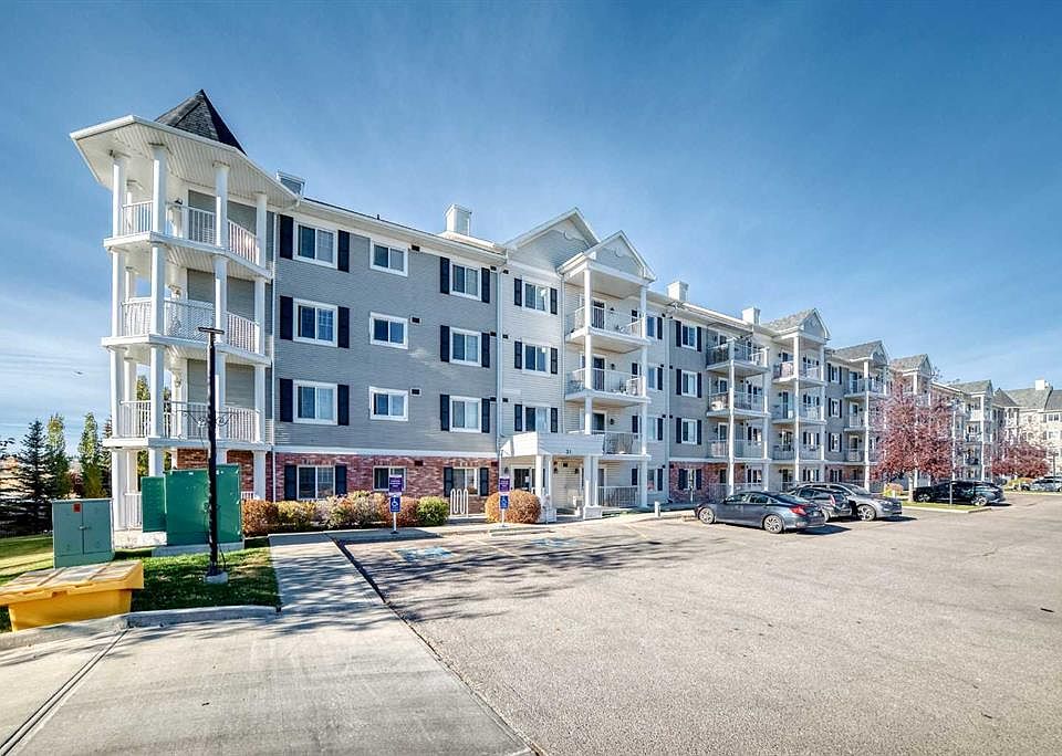 Beautiful 1 Bedroom Condo in Lighthouse Landing! Fantastic opportunity to own a well-kept Top-floor unit just steps from the lake and walking paths. Features 9 ft ceilings, hardwood floors, a functional kitchen with stainless steel appliances and raised breakfast bar, bright and spacious living room walks out to the patio with a gas hookup for your summer BBQ. The bedroom includes a walk-through closet to a 4pc bath. This unit comes complete with a full-sized in-suite front-load washer and dryer, a storage locker, and an energized parking stall located directly in front of the entrance. Close to Vivo Rec Centre, shopping, restaurants, transit, and easy access to Stoney, Deerfoot Trails, Airport and Cross iron Mills. Don’t miss this great opportunity to move into this nice complex!