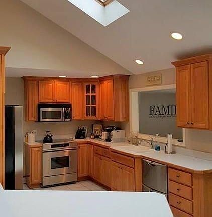 This is the one you've been waiting for! Beautiful, move in ready, 3 bedroom, 2.5 bath Ranch with 1 car garage, economical gas heat & central air! Gorgeous kitchen features stainless steel appliances including high end stove & dishwasher, breakfast bar, built in wine rack, plenty of cabinet space, cathedral ceilings, recessed lighting and sky lights. Kitchen open's to both the spacious, fireplaced dining room & sunken living room. From the living room, you can exit to the multi-level deck to relax or enjoy your large, flat yard. But if its Football Sunday or movie night, head downstairs to your amazing heated, finished basement with full bar and fireplace! Generous sized bedrooms with the master having its own bathroom. House also features hardwood floors, tiled kitchen and baths. Shed in the back yard has electricity and will be staying with the home. 3rd to last house on a dead end street. Close to shopping, restaurants, park and highway.