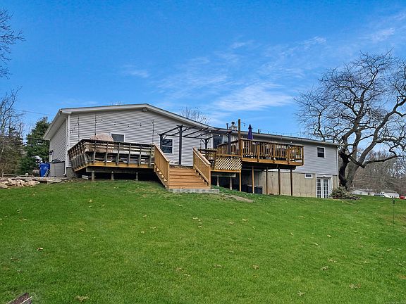 Nicely maintained ranch in a family-friendly neighborhood! This spacious home features 3 bedrooms and 2 full bathrooms on the main level, with additional finished space in the lower level perfect for a fourth bedroom, home office, gym, or media room. The lower level also includes a full bath, walk-in closet, and walk-out access to the backyard. Enjoy warm, efficient living with wood or pellet stove hook-ups on both levels. The home also offers an attached 2-car garage with 10' automatic doors, providing ample room for vehicles and storage. Outdoor amenities include an above-ground pool, a double deck, a large storage shed, and a cozy outdoor fireplace area-perfect for relaxing or entertaining. Recent updates to bring peace of mind and modern comfort include new roofs on the home, garage, and shed, new central air condenser, new flooring throughout the main level, newer kitchen appliances and newer septic tank. A wonderful opportunity to own a well-kept home with great indoor and outdoor living spaces. Schedule your showing today-this one won't last!