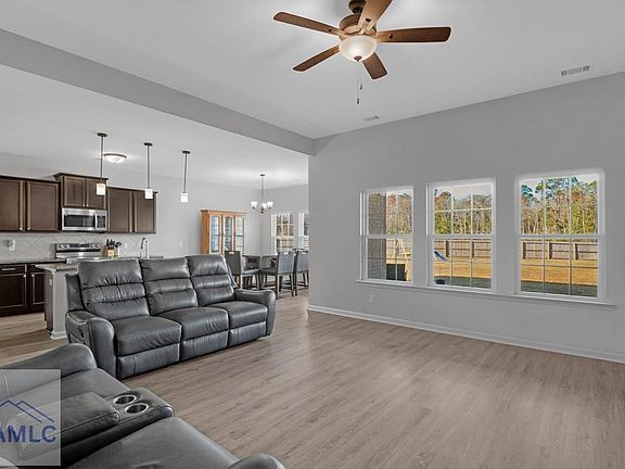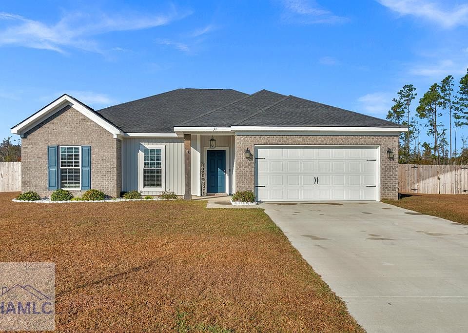 Welcome to this beautiful all-brick, split floor plan 4-bed, 2-bath home located in the gated Palmer Place subdivision. This home offers a spacious open-concept living room with an elegant electric fireplace that seamlessly flows into the bright, inviting kitchen. The kitchen features a large island, stainless steel appliances, ample cabinetry, and a comfortable eat-in dining area perfect for everyday living. The generous master suite includes an en suite bathroom with a double vanity, relaxing garden tub, and separate shower. On the opposite side of the home are three additional well-sized bedrooms and a full bathroom, providing privacy and convenience. Outside, enjoy the expansive .89-acre lot complete with a privacy fence, covered back porch, irrigation system, and hydro-seeded backyard—ideal for outdoor living and entertaining. Let this stunning home welcome you with comfort, style, and space. Disclaimer: The night time photo has been digitally enhanced/altered.