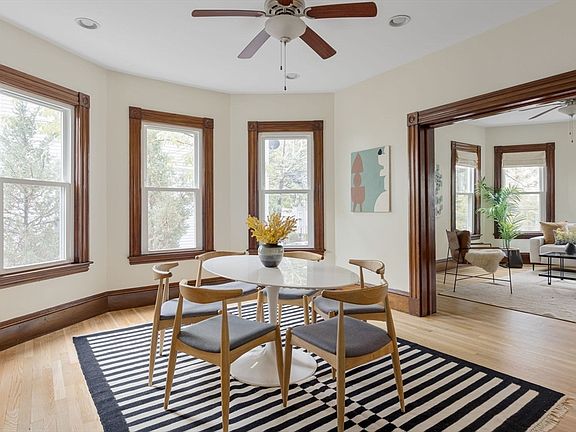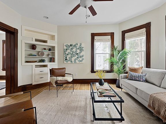 Turnkey Winter Hill 2bed 2bath condo with abundant charm and natural light. The open plan living and dining rooms boast gleaming hardwood floors, high ceilings, crown moldings, built-in hutch and glorious south-facing bay windows. The well-appointed kitchen features stainless appliances, quartz countertops and convenient in-unit laundry. The two generous bedrooms and two full tiled bathrooms offer plenty of space to relax and unwind. Enjoy evenings on your private back deck and adjacent shared yard. Central AC by nest thermostat, private basement storage area and one deeded parking space complete this move-in ready package. Prime Somerville location provides plentiful shopping and dining options, as well as convenient commuter access to I-93, Rt 28 and the Gilman Square green line. Additional proximity to Assembly Row, Magoun Sq, Union Sq, Foss Park and so much more. Welcome home!