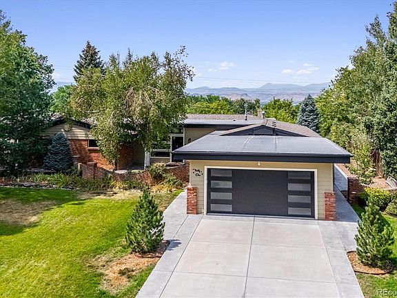 Set in the sought-after Paramount Heights neighborhood, this beautifully renovated ranch offers 2,700 square feet of main-floor living with stunning mountain views from almost every room. The floor to ceiling windows, wood floors, tall ceilings, and gas fireplace create a warm and inviting space. The open-concept layout is perfect for entertaining, featuring a chef’s kitchen with a large island, granite counters, pantry, stainless steel appliances, double ovens, and a gas range. The large dining room opens up onto the beautiful backyard. The home hosts three bedrooms, three bathrooms, a versatile office, and convenient main-floor laundry. The primary suite with mountain views opens up onto the sweeping patio and features a large bathroom and walk-in closet. A thoughtful remodel in 2020 brought new flooring, solid wood doors, Marvin windows, deluxe sliding doors, and a striking gas fireplace. Exterior updates include James Hardie siding, a stamped concrete patio, a partially new EPDM roof, and an expanded four-car garage with a new driveway. At 945 square feet, the garage offers endless opportunities for car enthusiasts, hobbyist, storage, or future expansion. Modern systems such as fully owned solar panels, A/C, dual tankless water heaters, and a radon mitigation provide efficiency and peace of mind. The outdoor features a stone lined creek that runs across the front of the property, a serene courtyard that leads to the front door, and a backyard oasis that's perfect for relaxing or outdoor entertaining. Enjoy a central yet tranquil location, within walking distance of Paramount Park, Crown Hill Park, Gold’s Marketplace, and the Wheat Ridge Rec Center. Easy access to Denver, Golden, and the mountains.